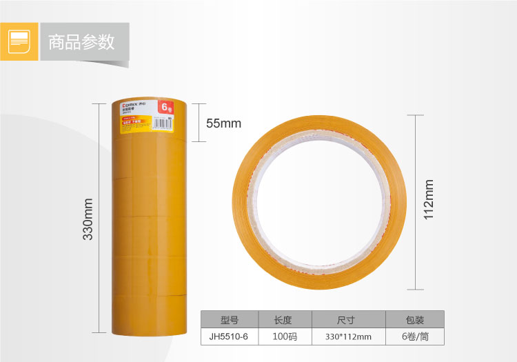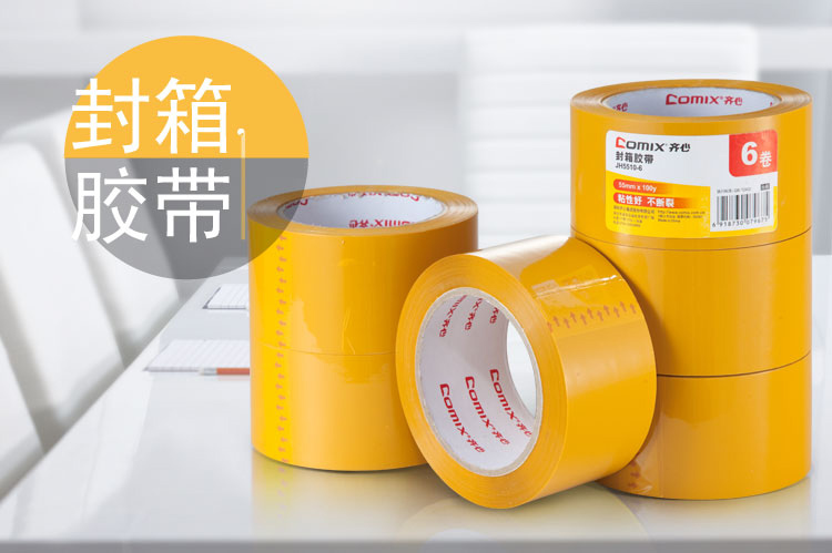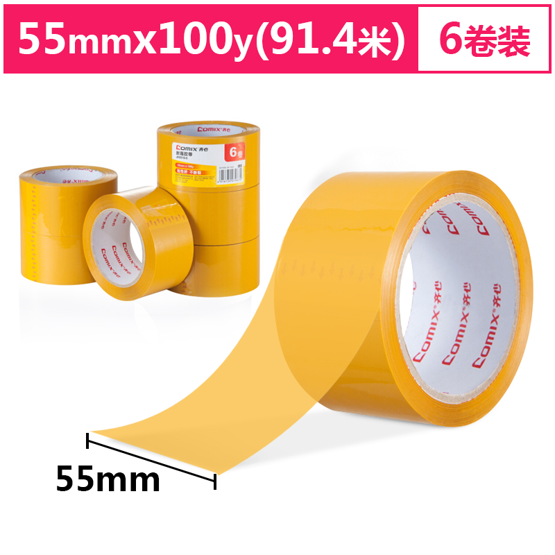 齐心(COMIX)6卷装55mm*100Y(91.4米)米黄色强粘性封箱胶带 办公文具JH5510-6