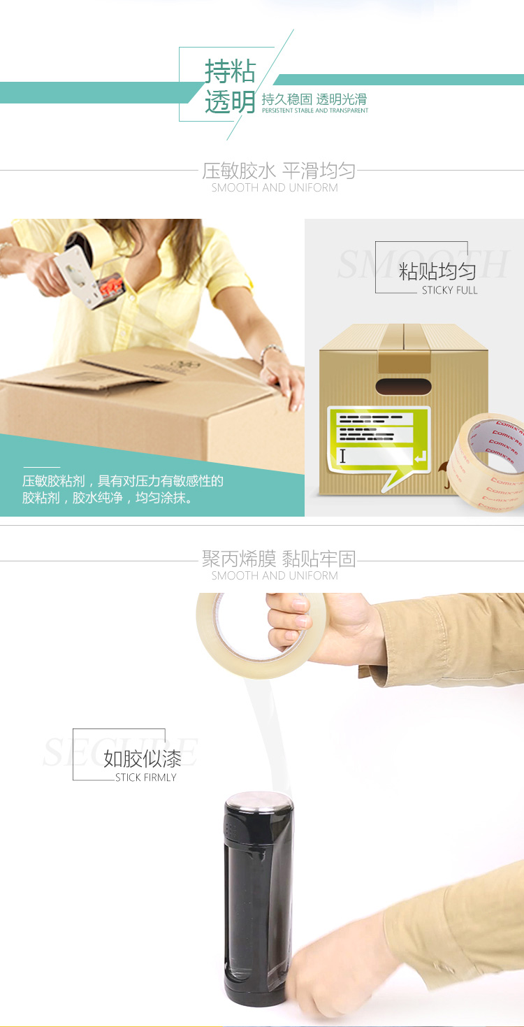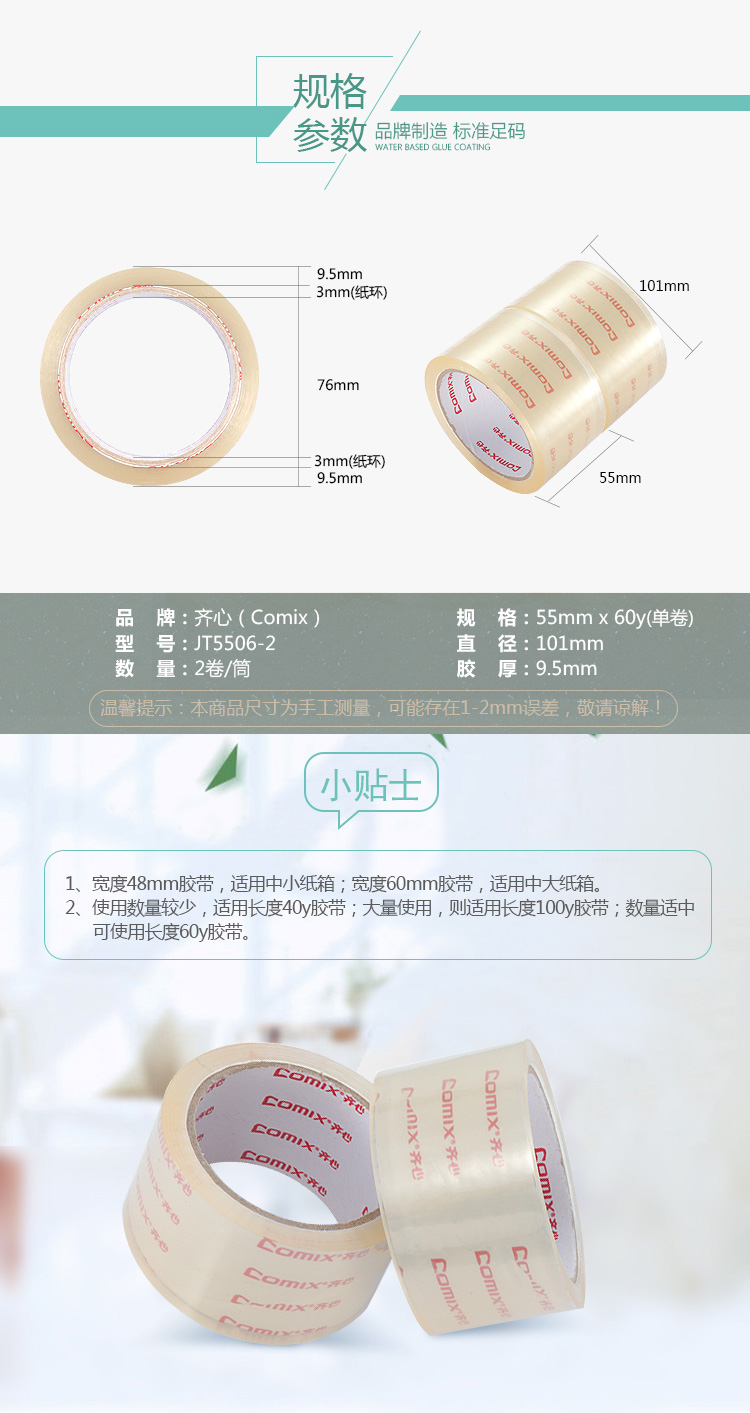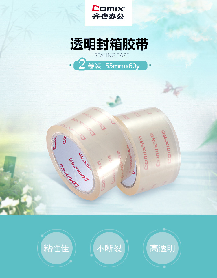 齐心(COMIX)2卷装55mm*60y(54.6米)高透明封箱宽胶带 办公文具 JT5506-2