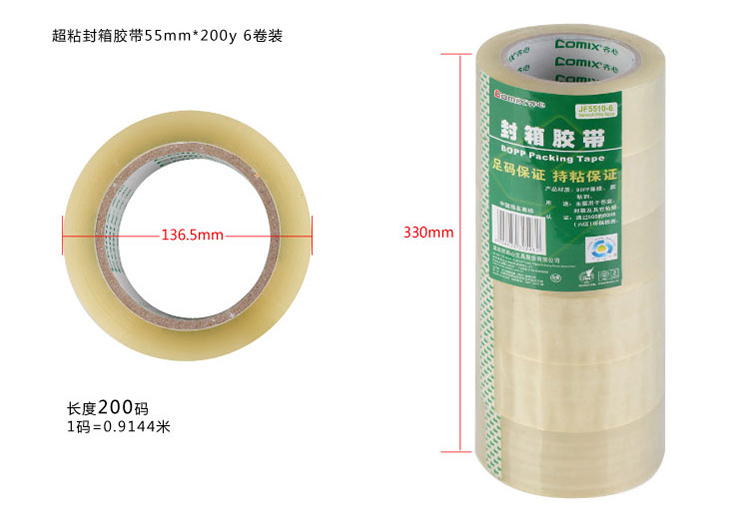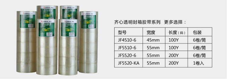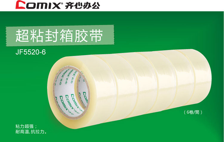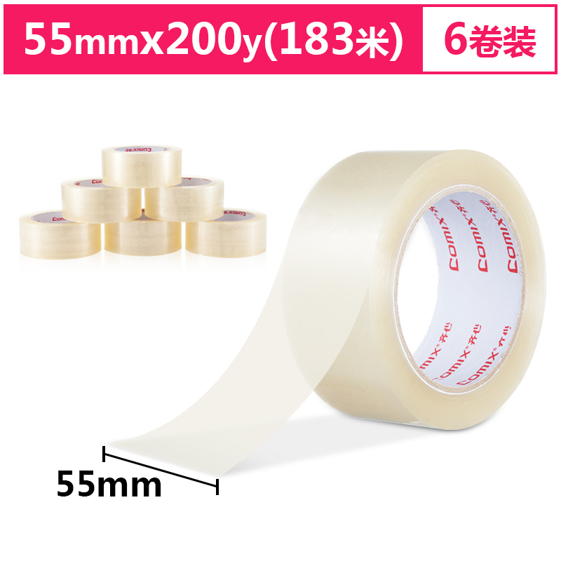 齐心(COMIX)JF5520-6 封箱胶带55mm×200Y(183米)6个装