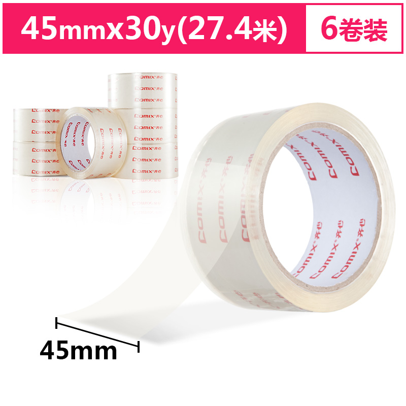 齐心(COMIX)45mm*30Y(27.4米)高透明胶带 宽封箱胶带 办公文具 JF4503-6