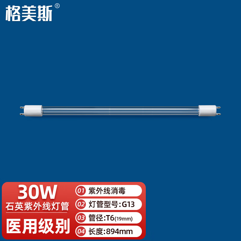 企普 G13 紫外线消毒灯管 企普杀菌灯 医用级30W无臭氧长894mm 紫外线灯管