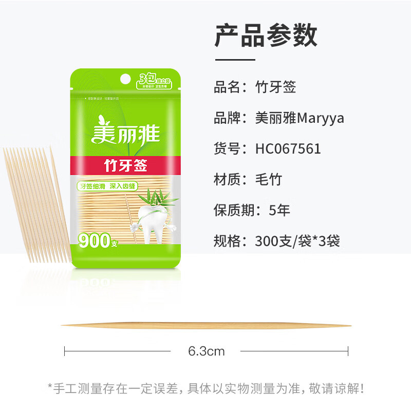 美丽雅 HC067561 一次性牙签 家用竹制双头剔牙棒 酒店水果签小吃签