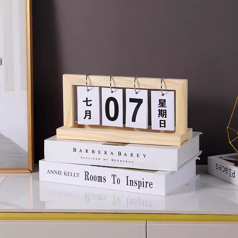 安赛瑞 65885 创意木质星期日历摆件 幼儿园桌面日期牌台历万年历拍照装饰小道具