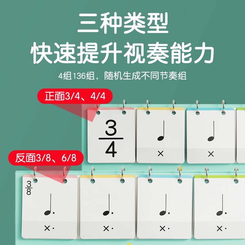 可得优 2568 YOOBA 钢琴节奏训练卡超级视奏卡音符卡片五线谱识谱认谱教具乐理