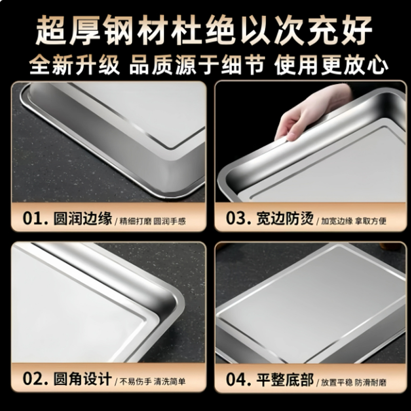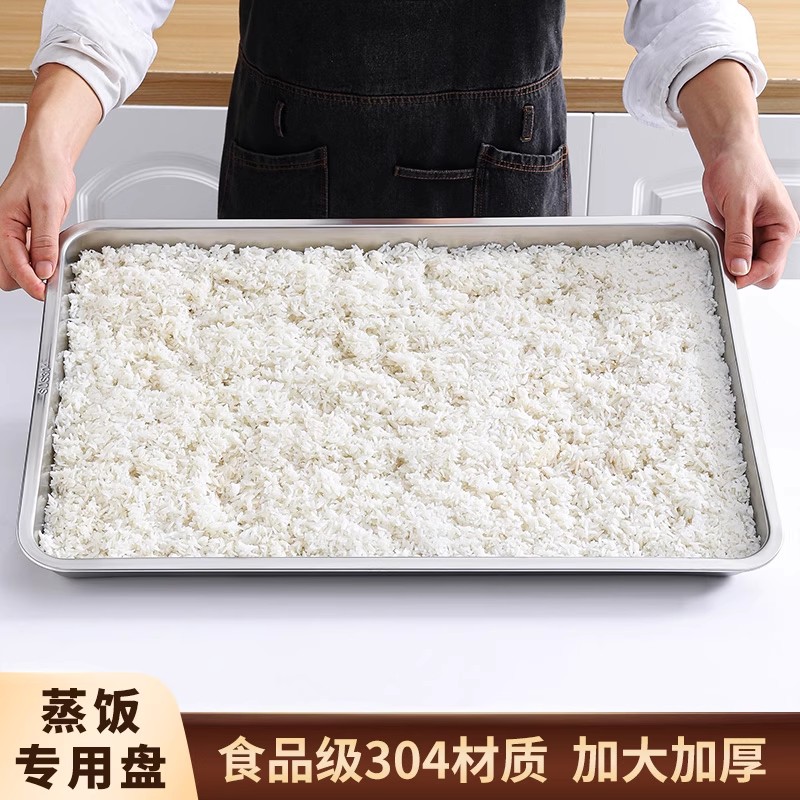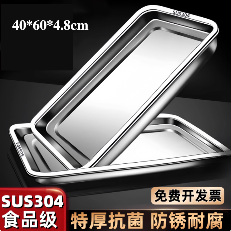 德玛仕 XM01 食品级304不锈钢托盘 蒸饭盘 家用商用长方形铁盘子 方盘 蒸格