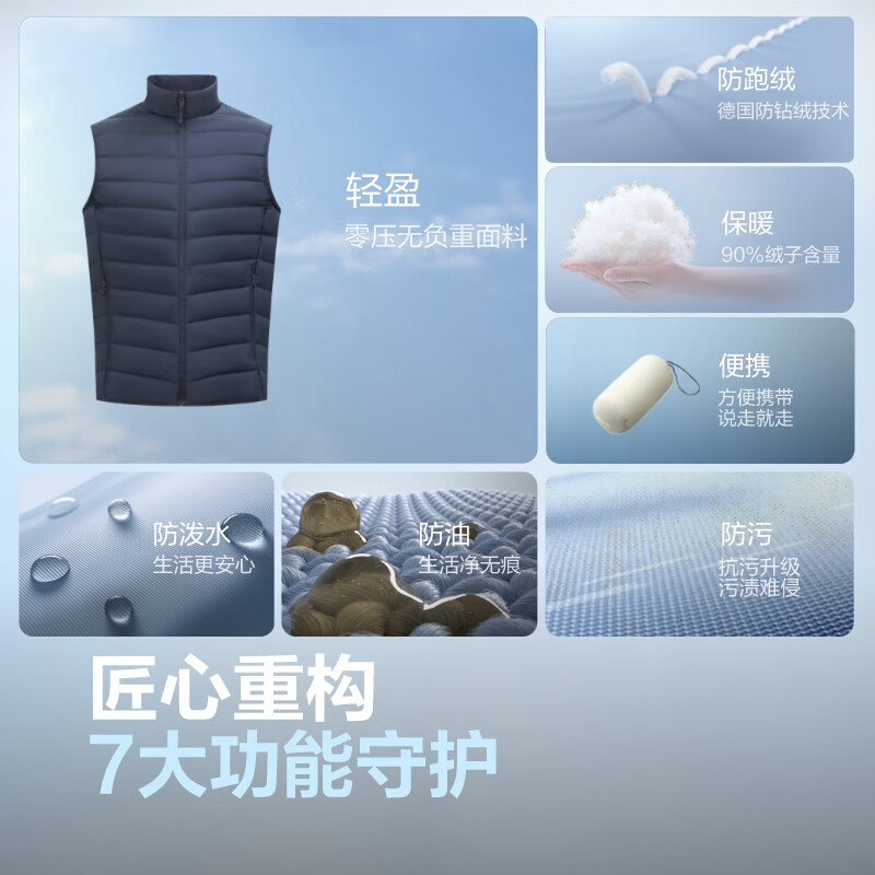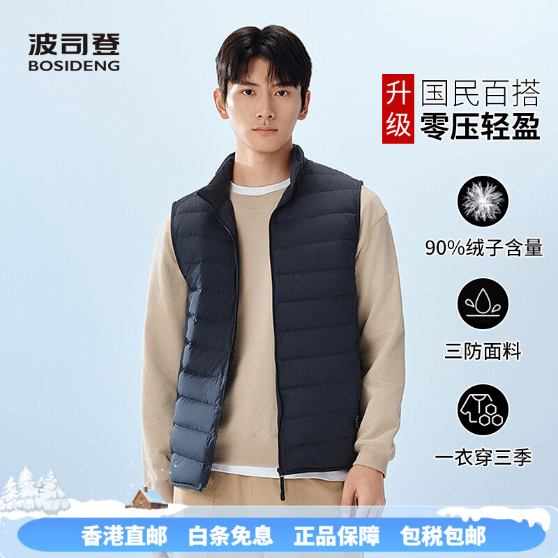 波司登 B250131008 新款羽绒马甲 男秋冬轻薄立领外穿保暖背心 中年马夹 保暖棉服
