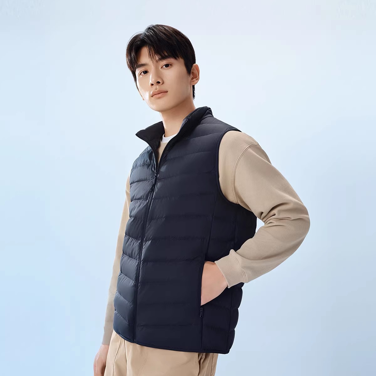 波司登 B250131001 新款羽绒马甲 男秋冬轻薄立领外穿保暖背心 中年马夹 保暖棉服