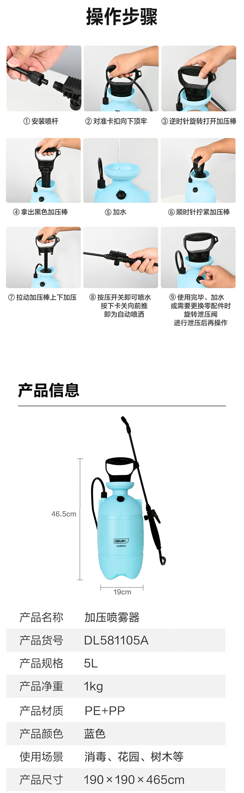 得力/deli DL581105A 手动气压式喷雾器5L 消毒灭蚊打农药高压喷壶大容量园艺浇花洗车 喷嘴