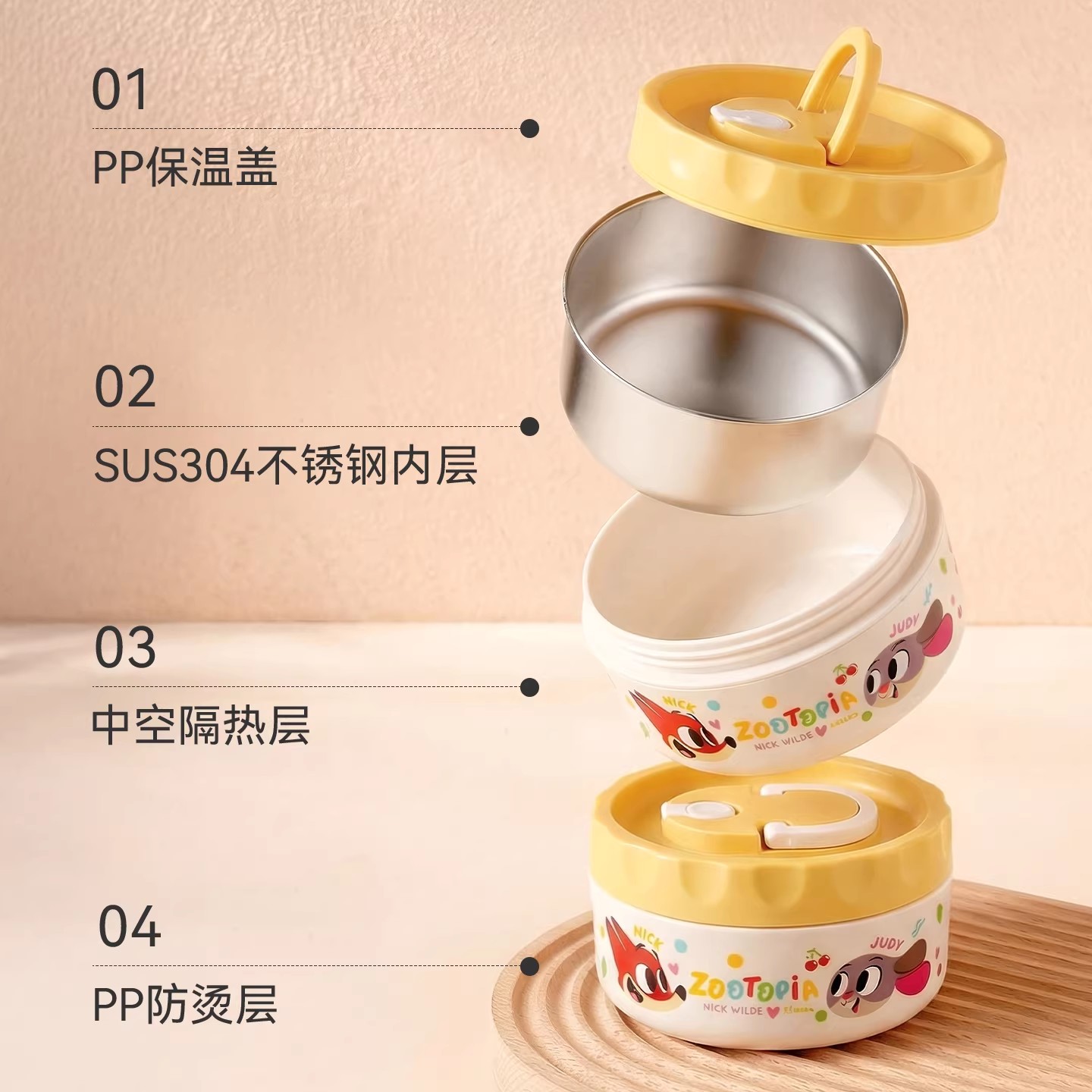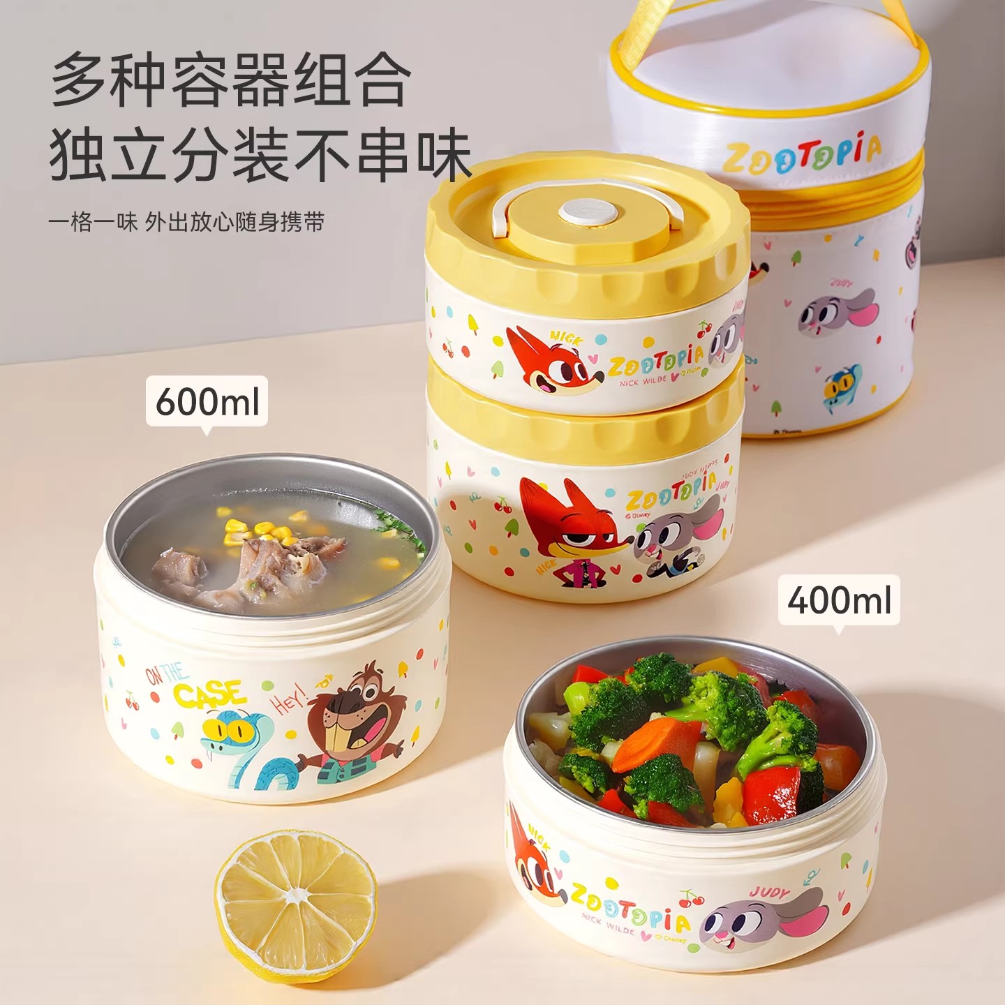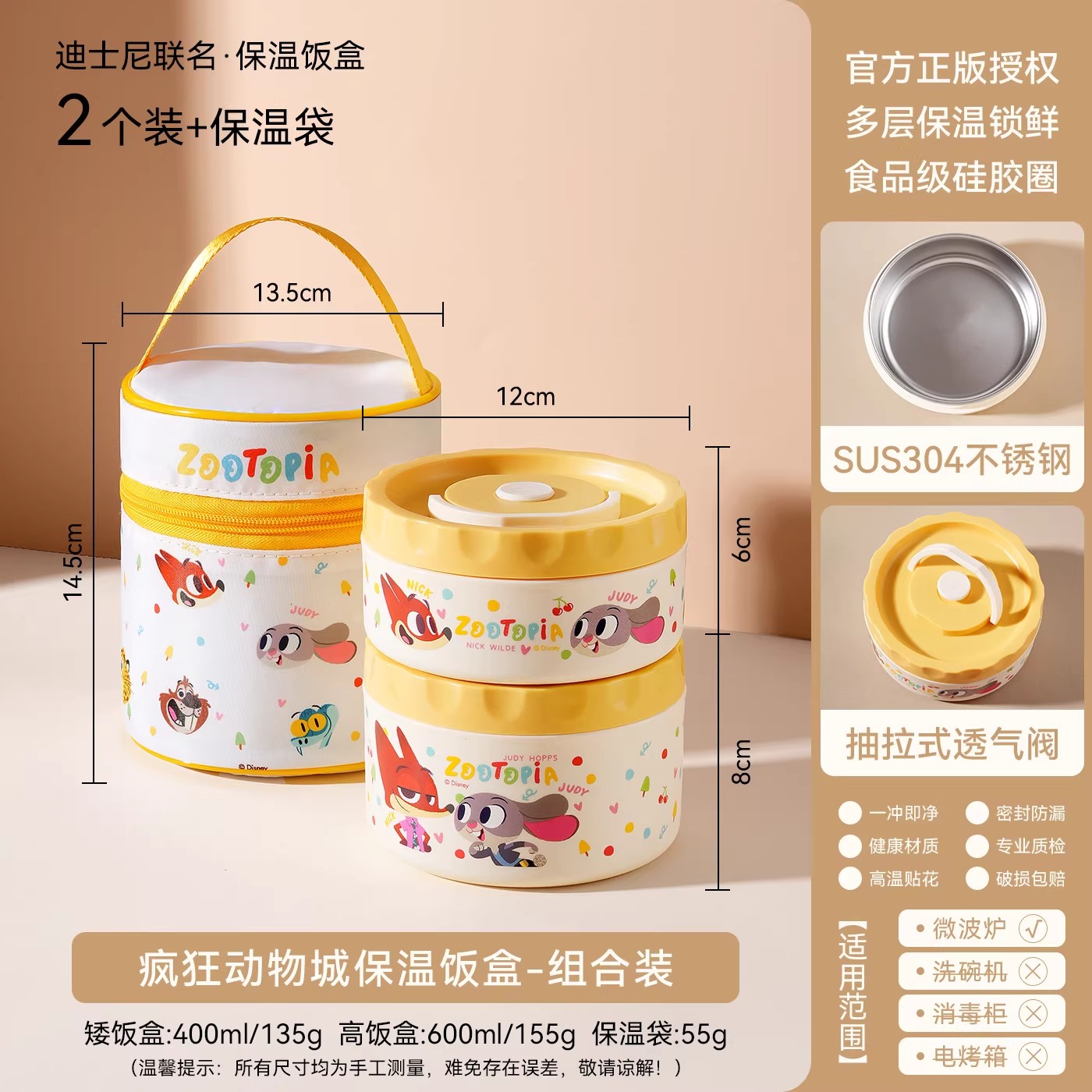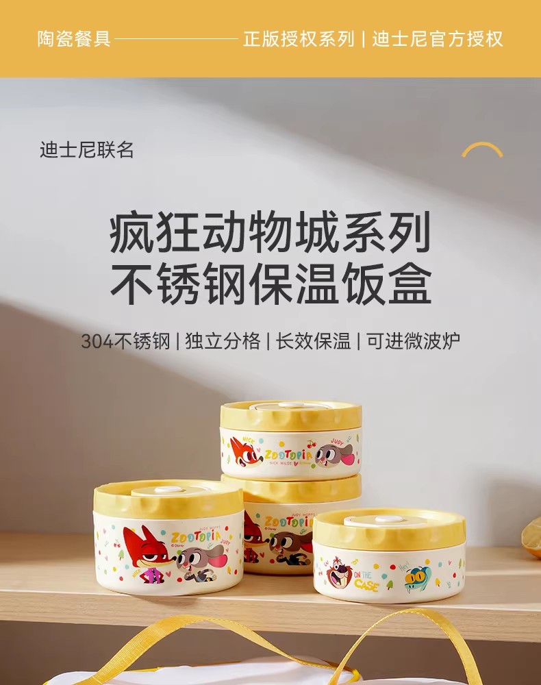 企普 DSN-2 疯狂动物城上班族专用304不锈钢保温饭盒 便当盒 迪士尼联名款 2个装