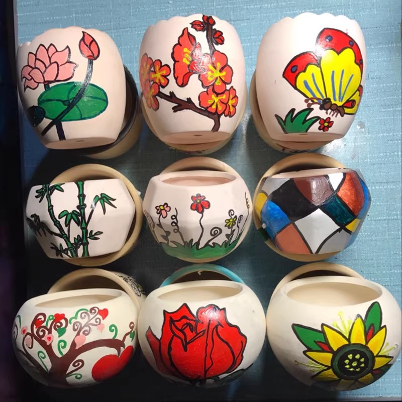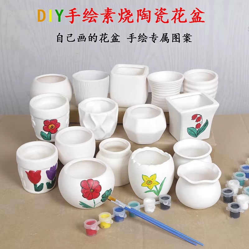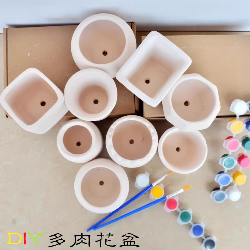 企普 HP-0102 DIY手绘上色陶瓷白坯多肉拇指小花盆涂鸦彩绘有孔素烧