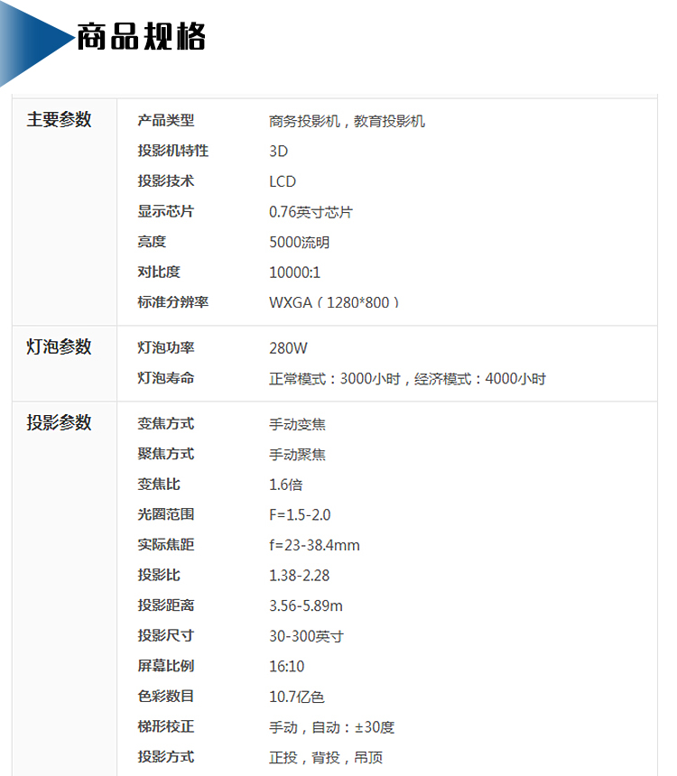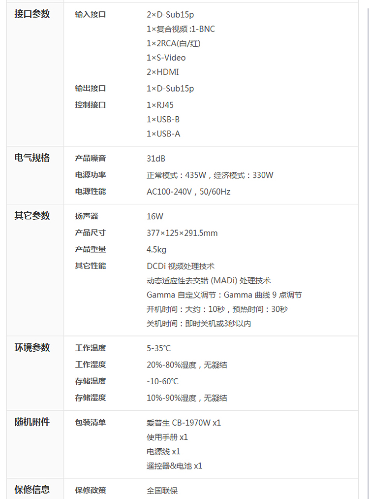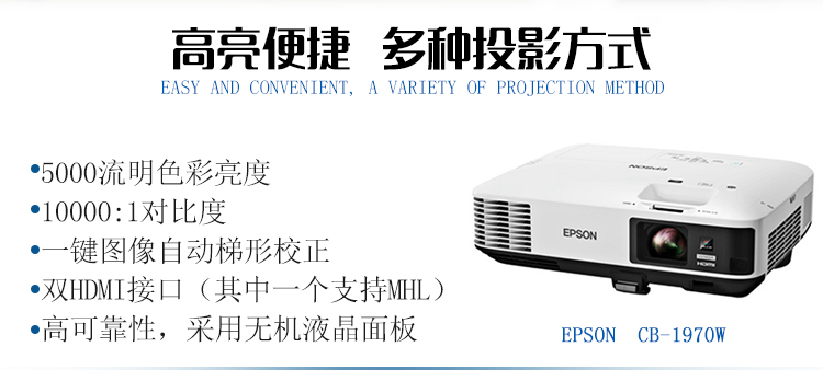 爱普生(EPSON) CB-1970W 多媒体液晶投影仪 5000流明