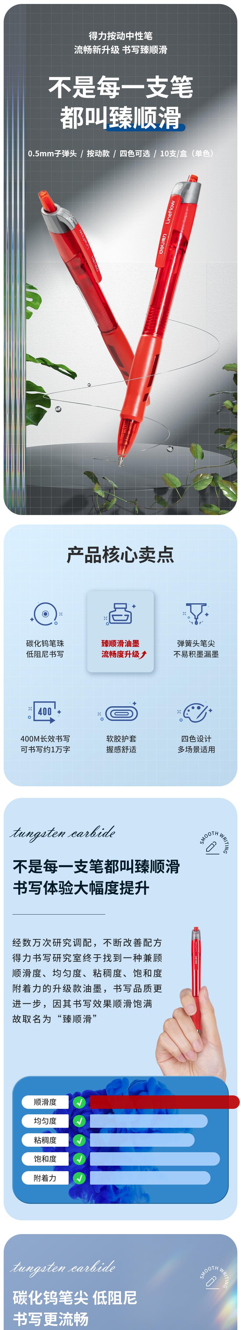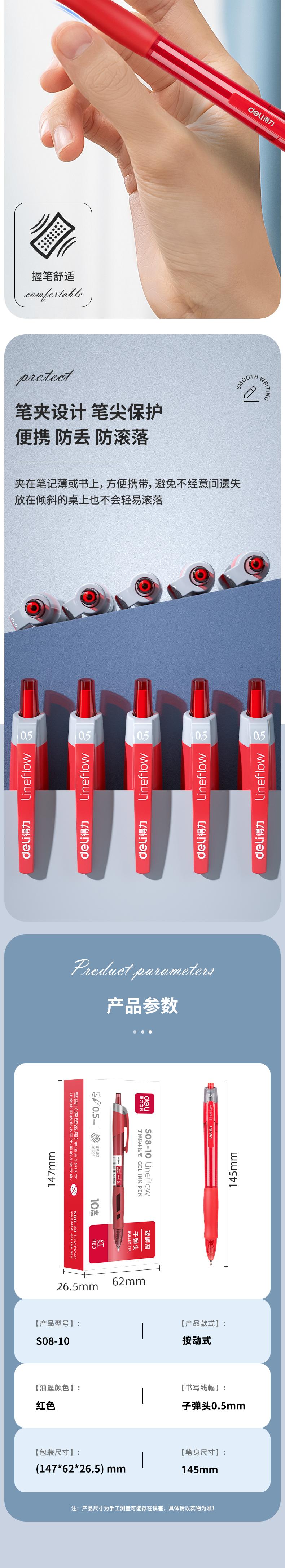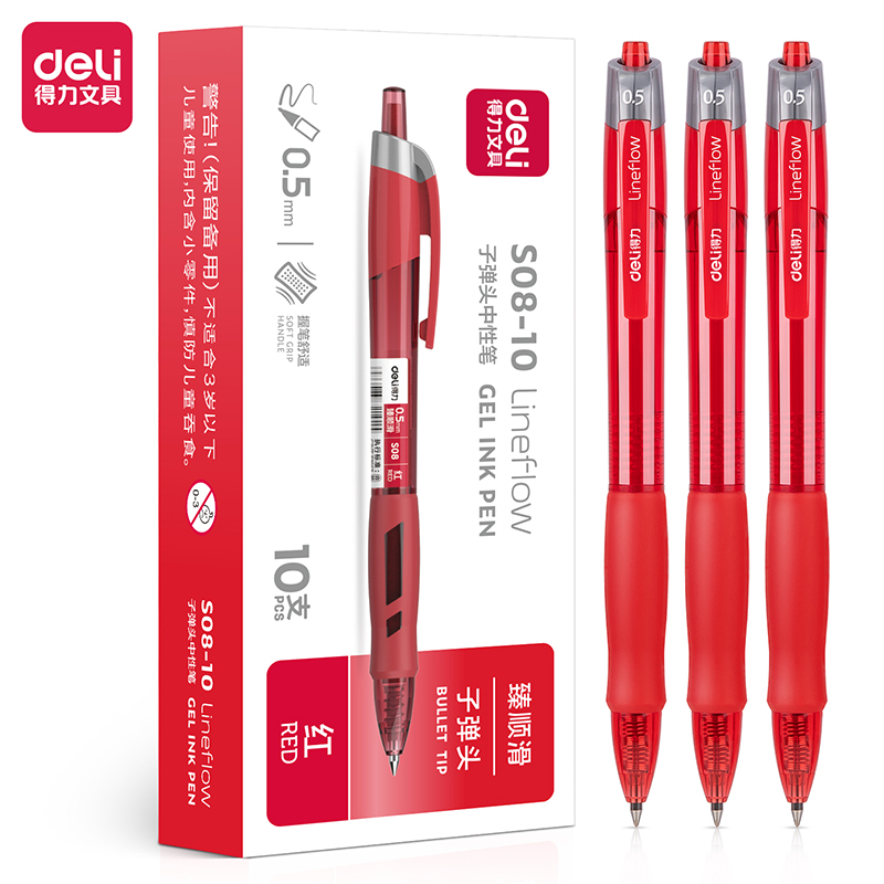 得力/deli 臻顺滑中性笔S08红