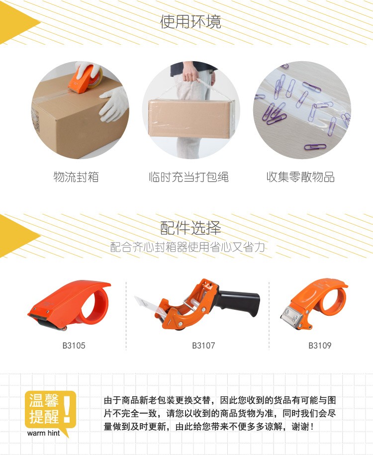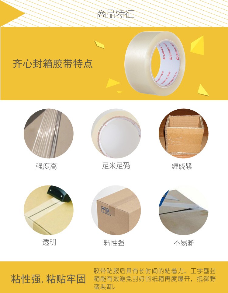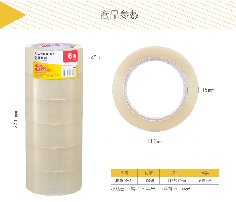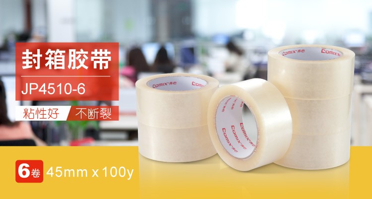 齐心/Comix JP4510-6 45mm*100y封箱胶带 透明 6卷/筒