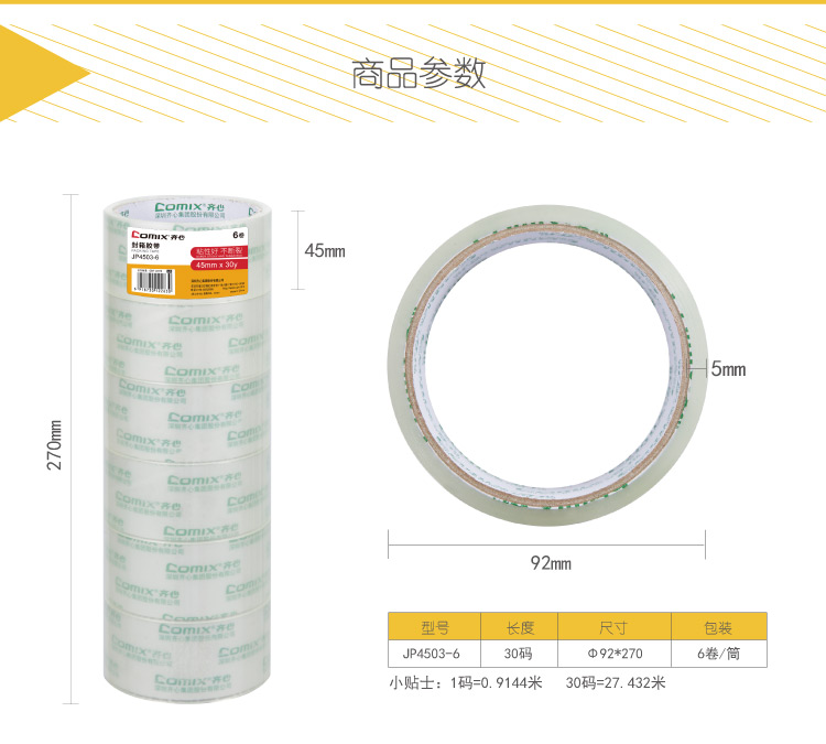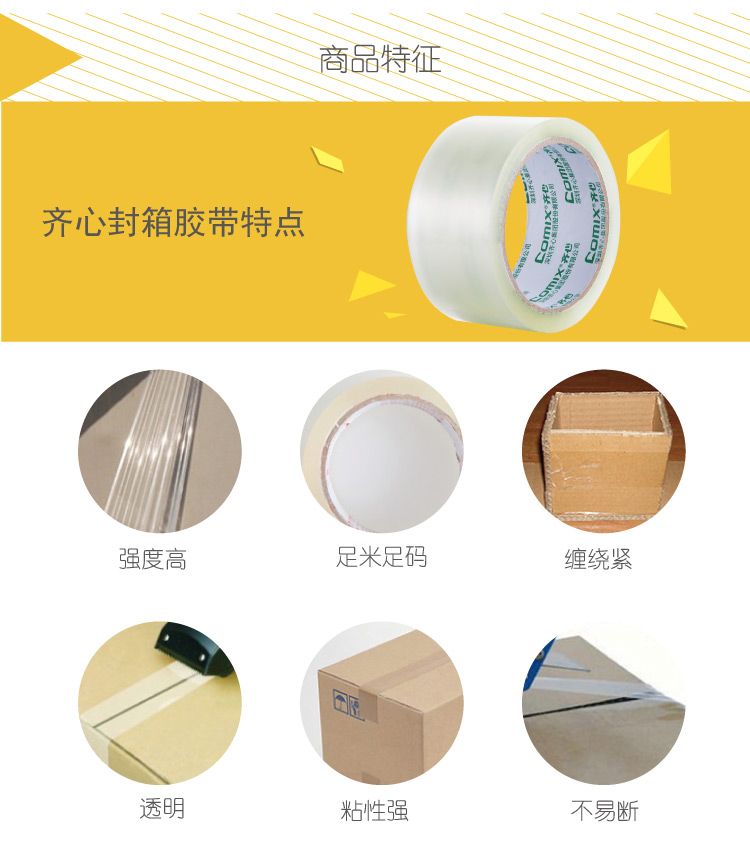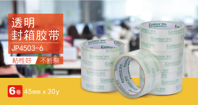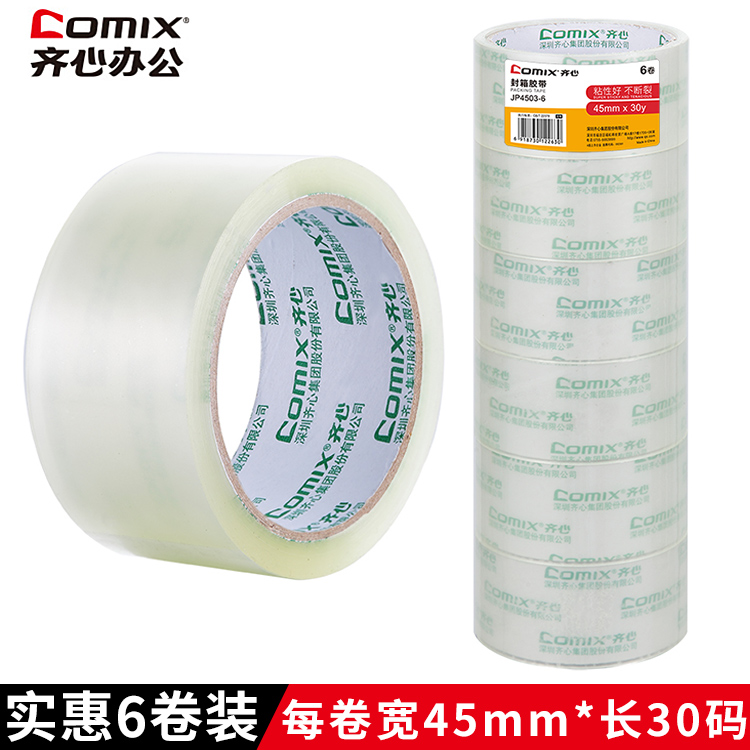齐心/Comix JP4503-6 普透封箱胶带45mm*30y 透明 6卷/筒