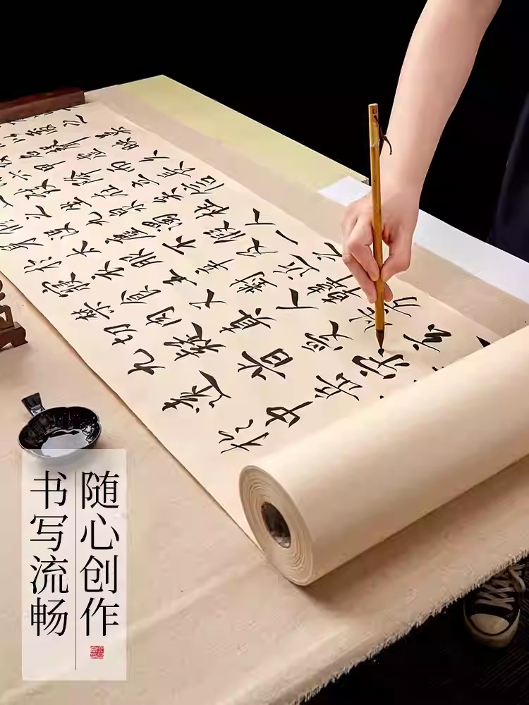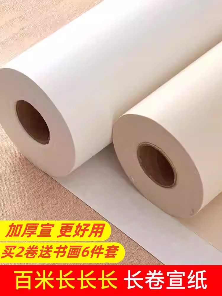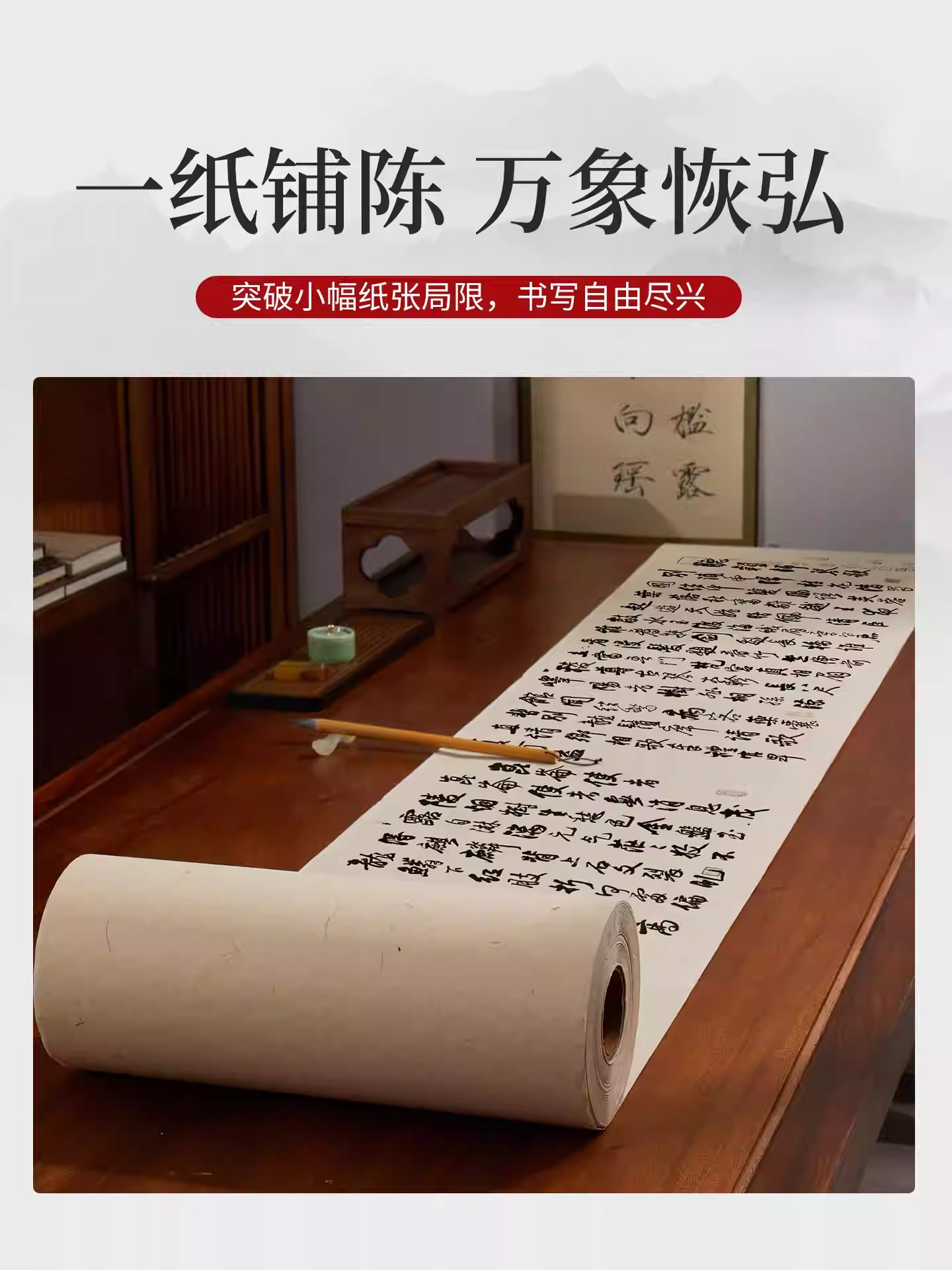百米长卷宣纸卷轴毛笔国画专用书法专用纸作品纸半生熟仿古加厚毛边纸工笔画半生半熟生宣练习用纸